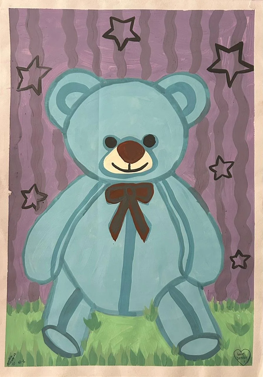 This gently crafted blue bear holds a special place in my heart, a token of the care I felt for someone dear. Originally chosen for him, its soft fur and comforting size now make it one of my favorite stuffed toys. Every hug from this bear is a reminder of cherished memories and a bond that leaves a lasting impact. The soothing blue hue brings peace and comfort, reflecting the warmth of affection shared. Whether displayed on a shelf or held close at night, this bear encapsulates a meaningful connection that continues to resonate within me.
